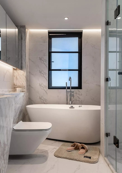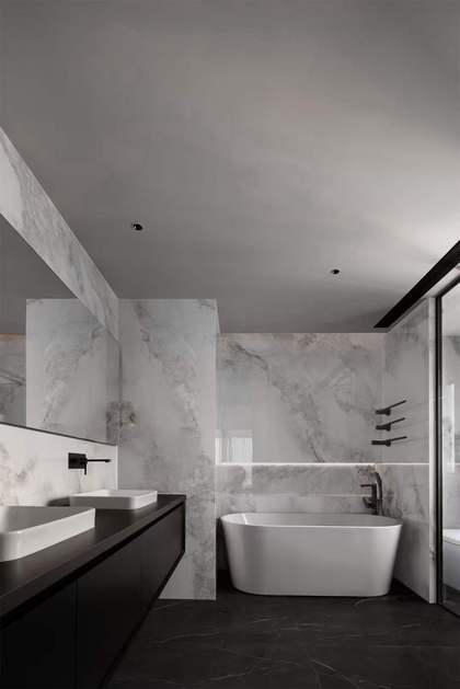 126平三居室,加入大理石和金属元素,充满了轻奢感