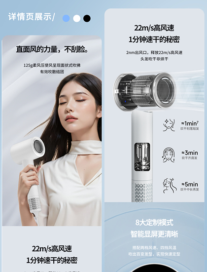 daewoo大宇 X 青鸟视觉 X 智能电吹风 | 详情页分享