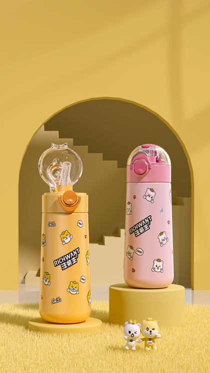 【母婴用品】儿童保温杯套装详情渲染设计(家具风)