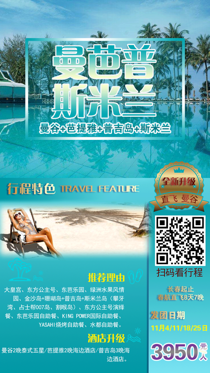11月 旅游海报 泰国 新加坡 马来西亚 巴厘岛 普吉岛