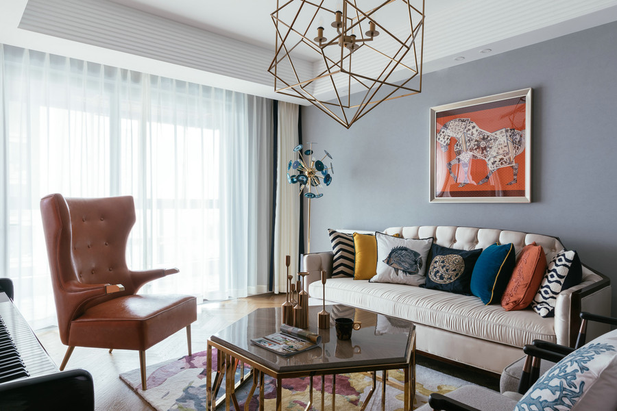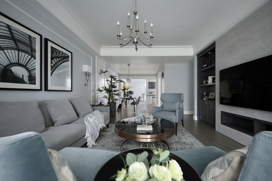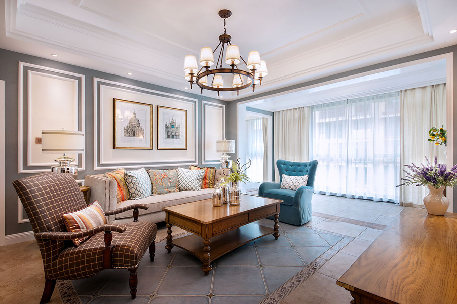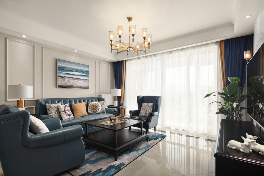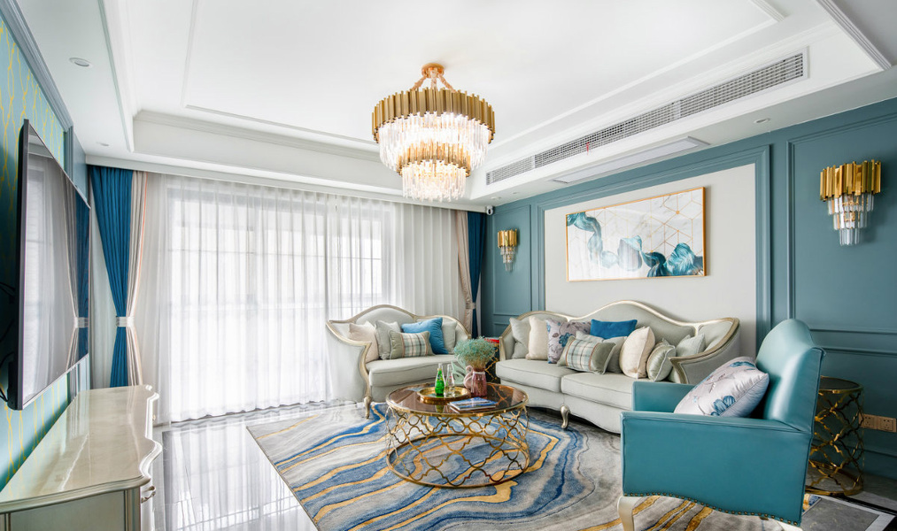 深圳装修:120㎡掬月半山,简欧风格,一抹孔雀蓝绝美