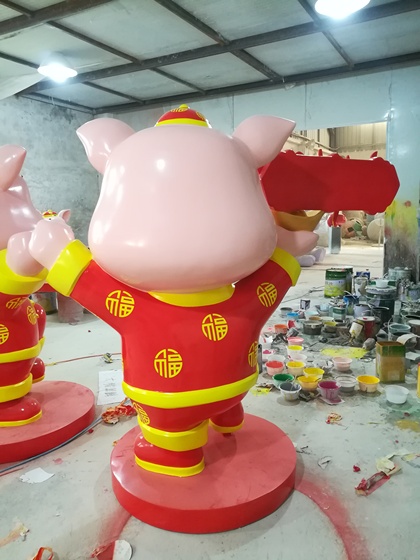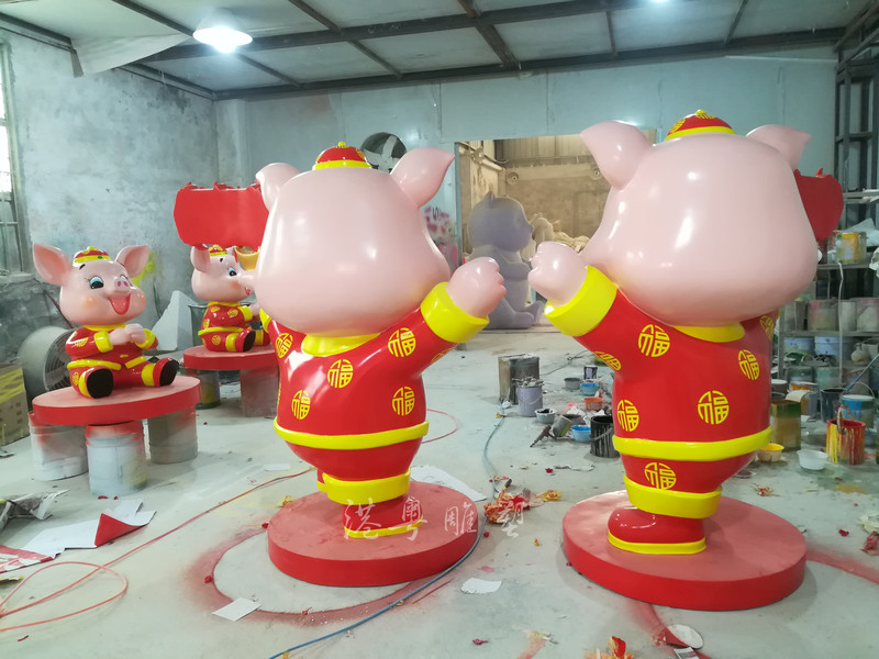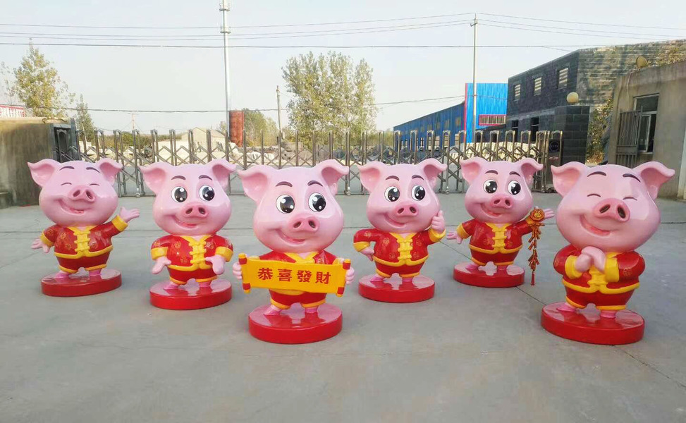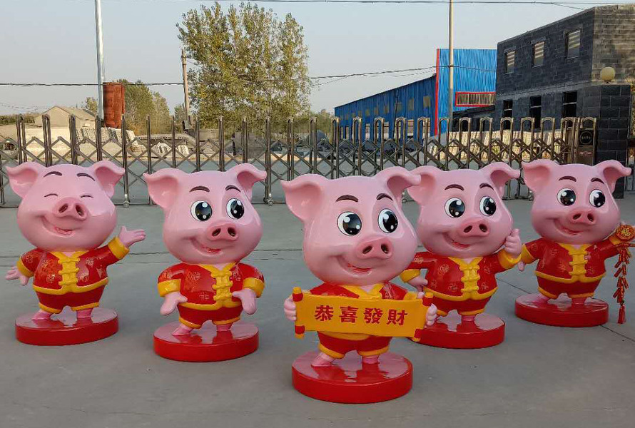 喜庆新年卡通玻璃钢牛年猪年雕塑商场装饰品美陈摆件