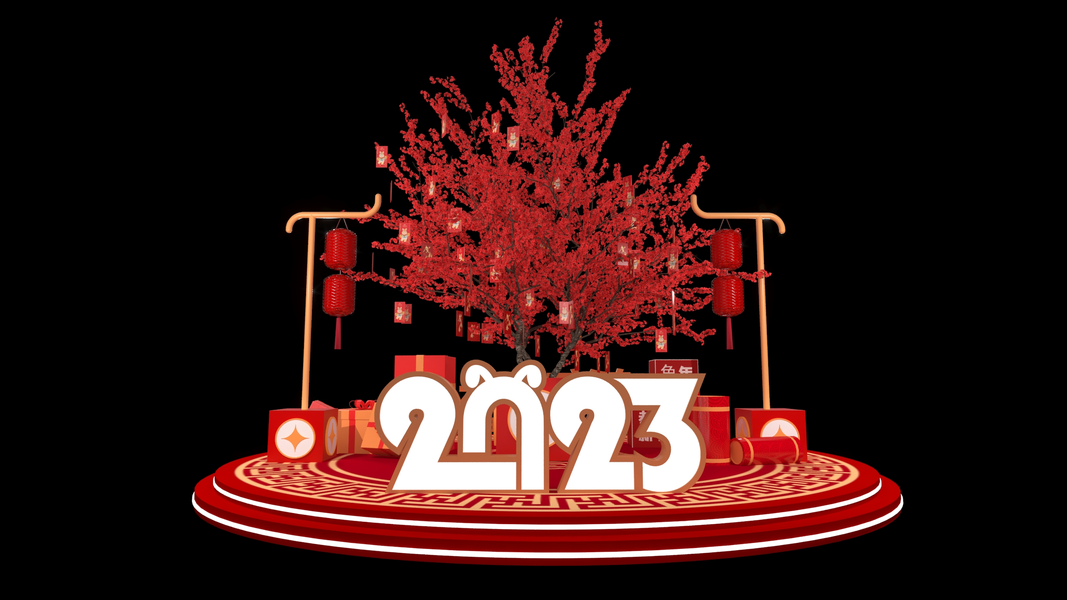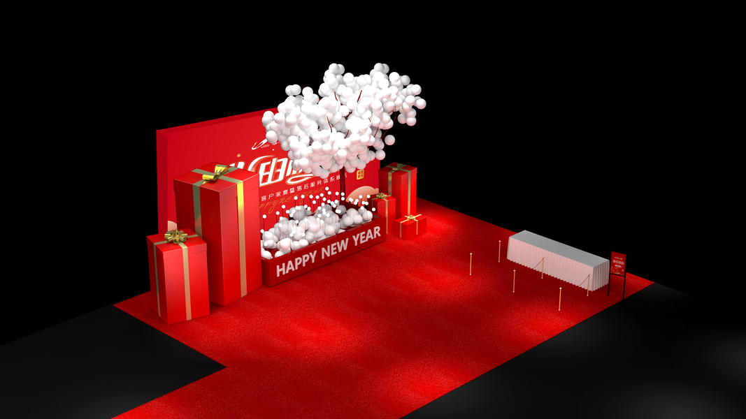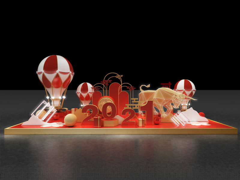X牛年会红色系新春风3D设计效果图