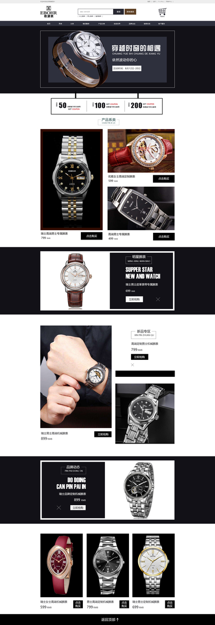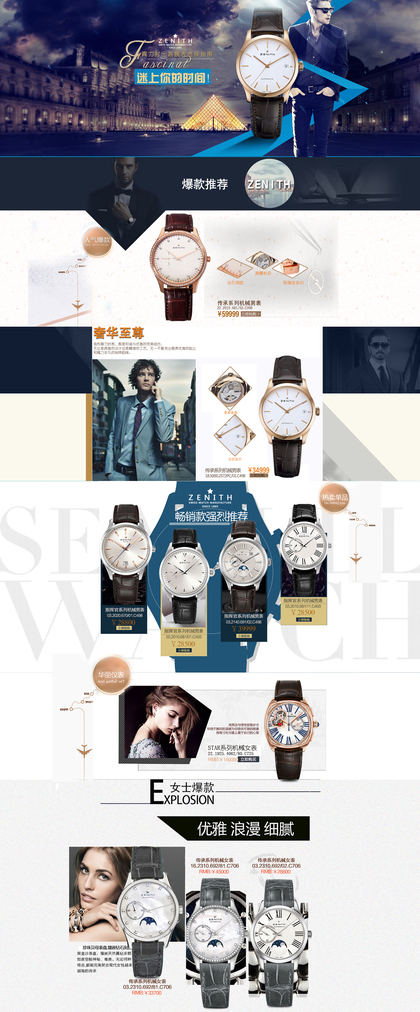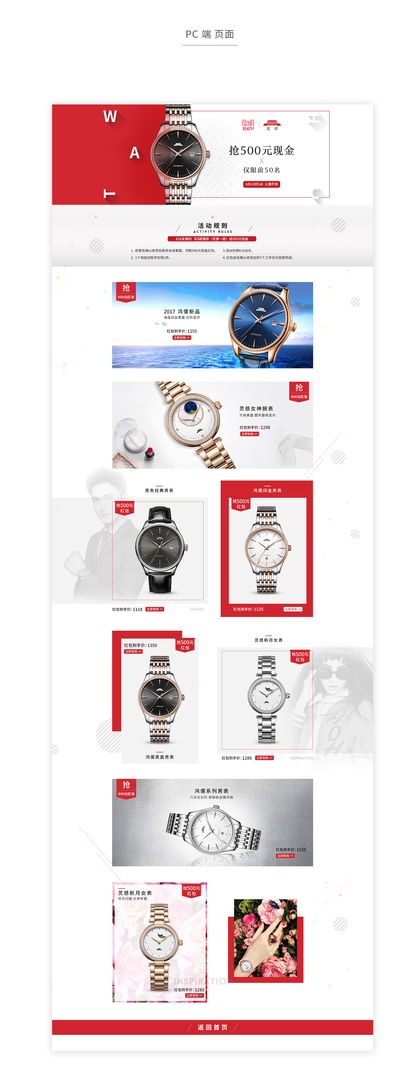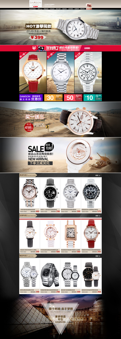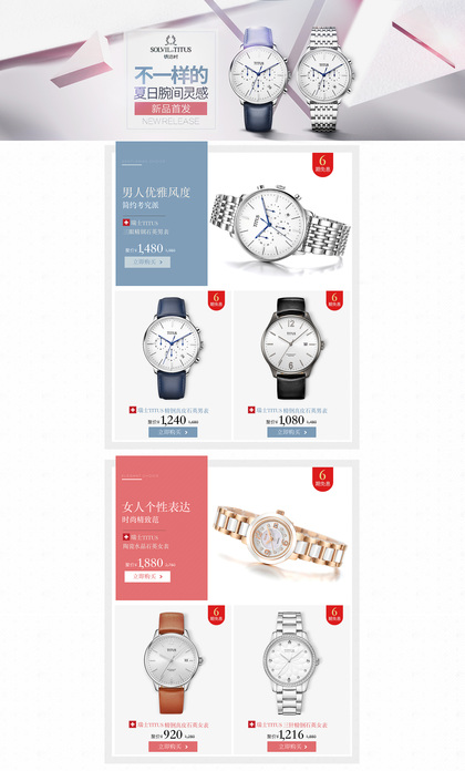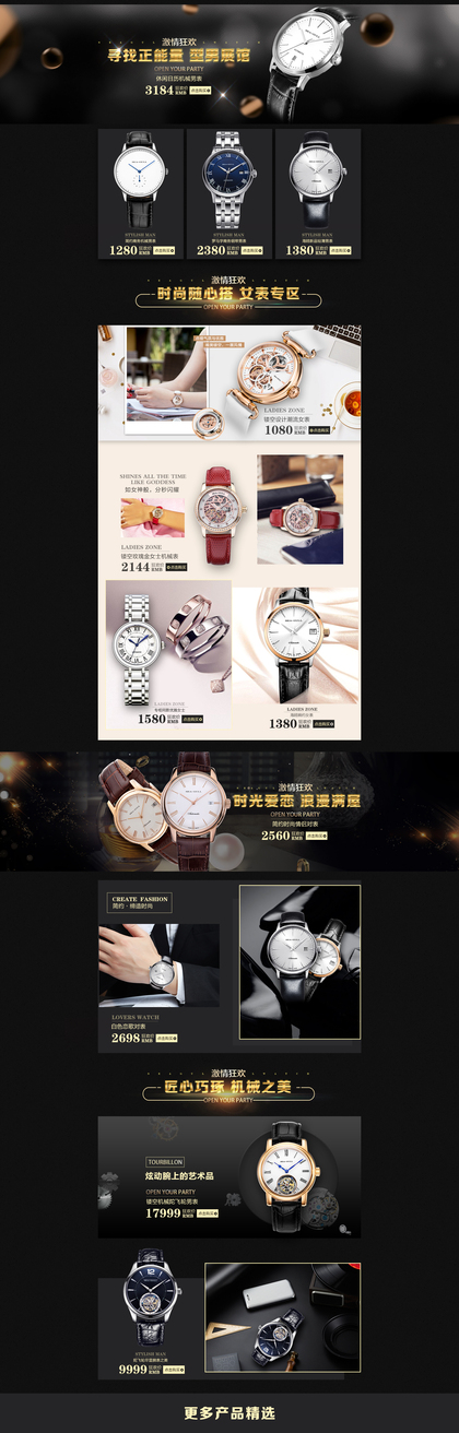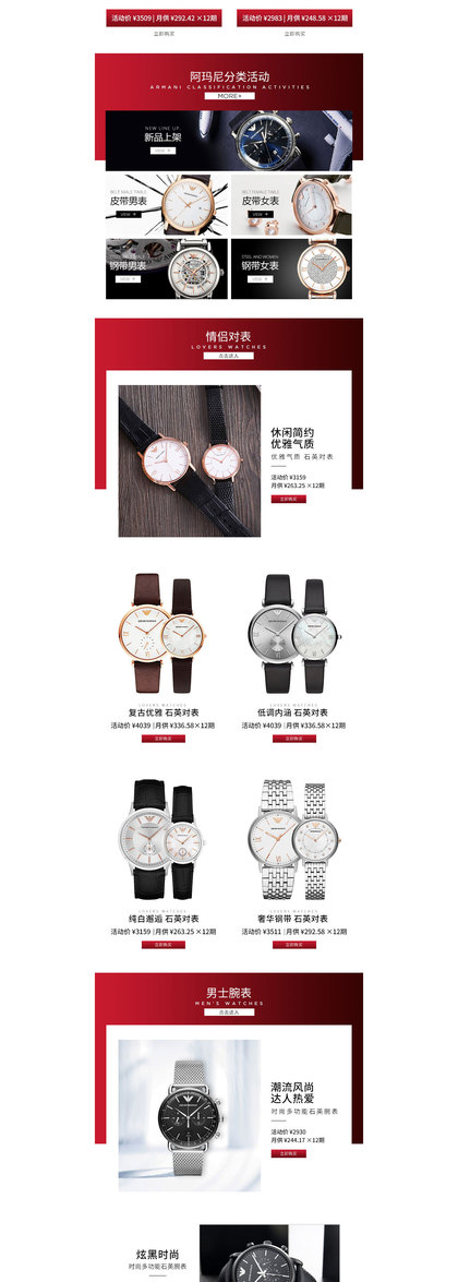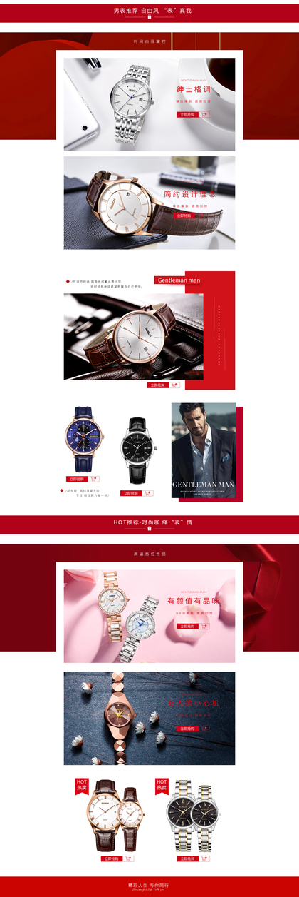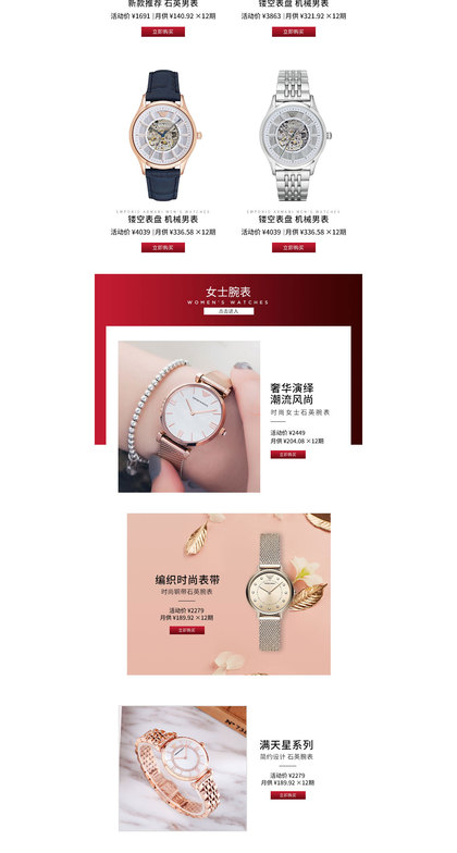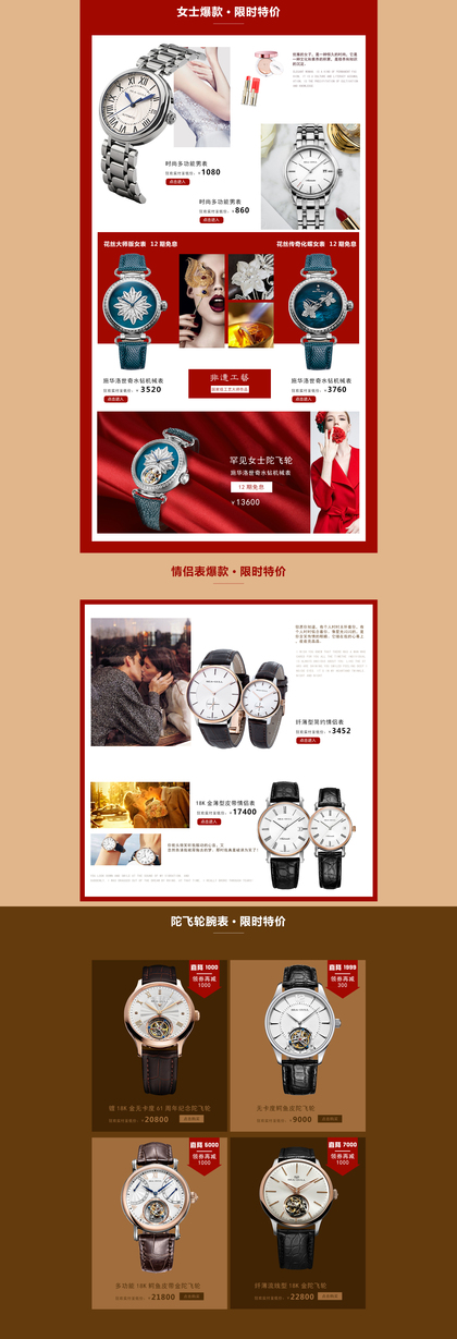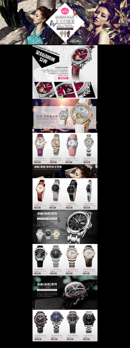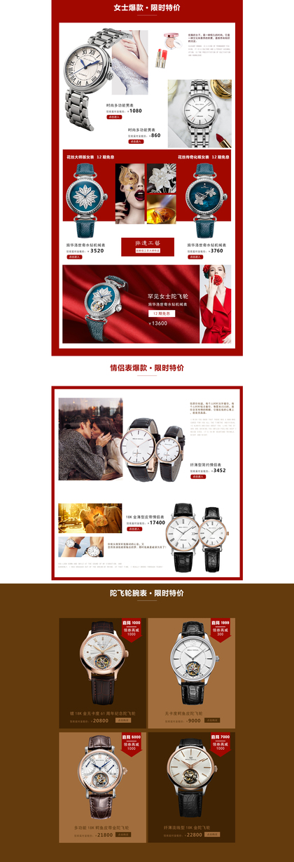 天猫 首页设计 三八妇女节页面 女士石英/机械手表 情侣对表
