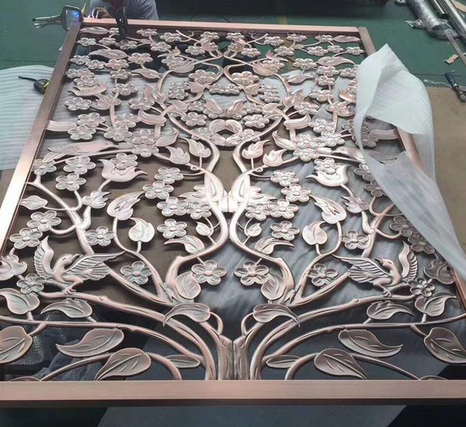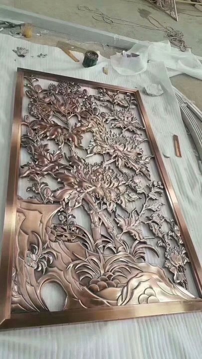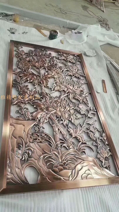 仿古铜铝板雕刻屏风背景墙,装饰您居室的优雅