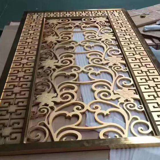 酒店装饰镜面玫瑰金不锈钢激光镂空花格屏风