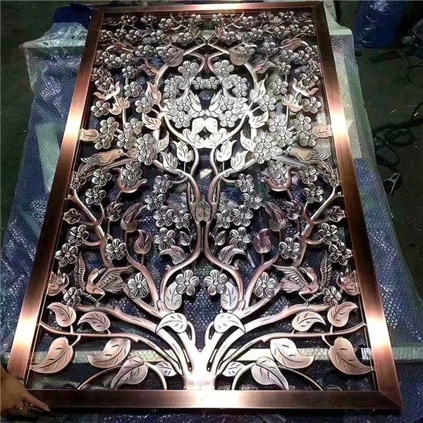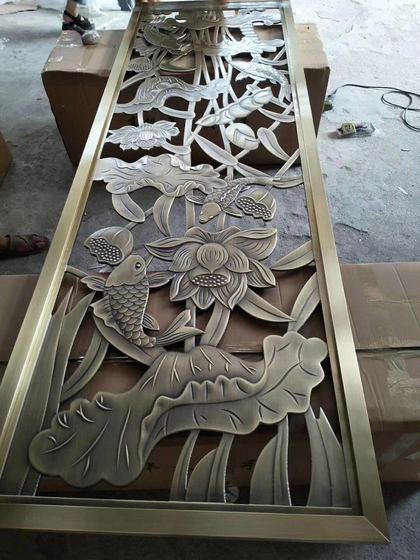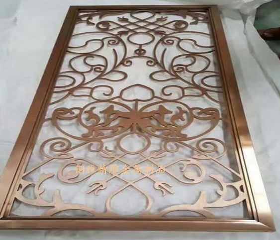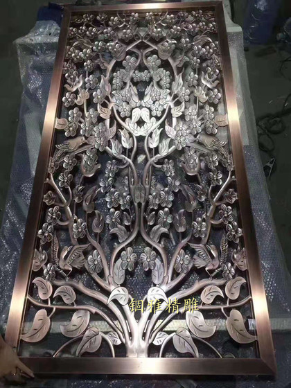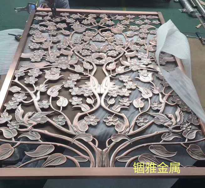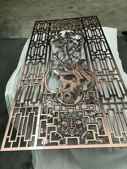 拉丝青古铜铝板雕刻镂空屏风融实用与欣赏与一体