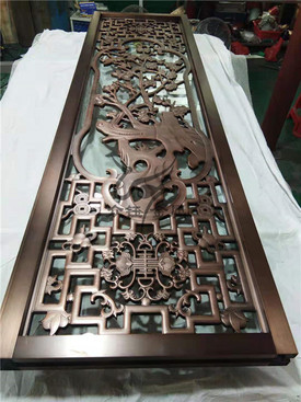 红古铜铝板雕刻屏风镂空花格是一款中式风格的产品