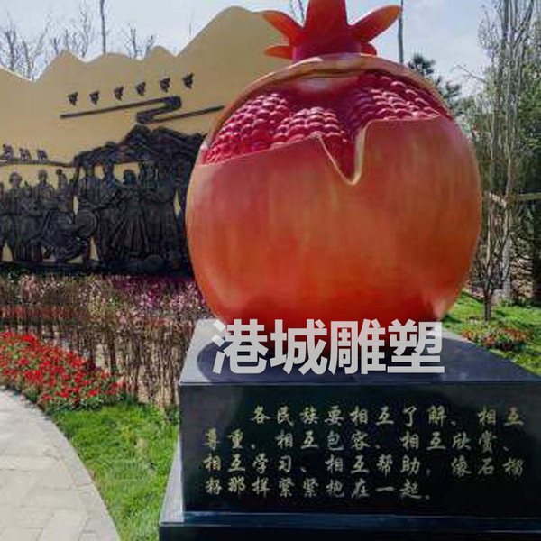 城市广场民族团结主题标志玻璃钢番石榴雕塑定制厂家