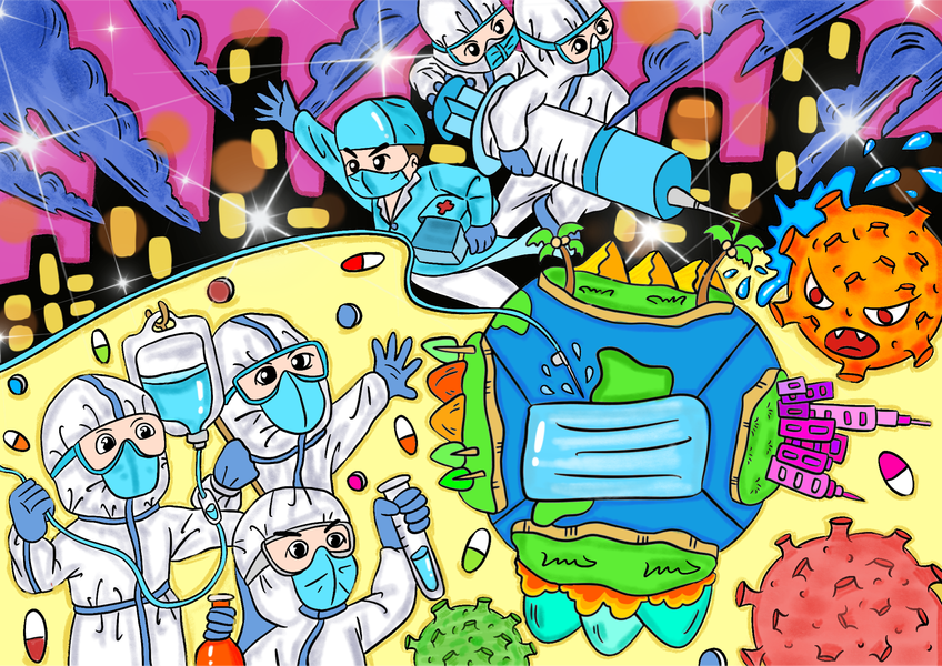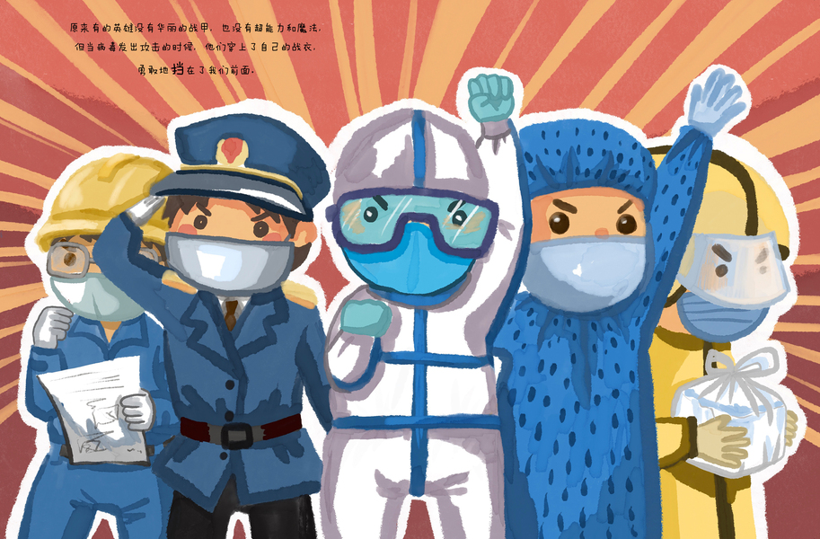 疫情期间和女儿一起画的绘本《真正的英雄》