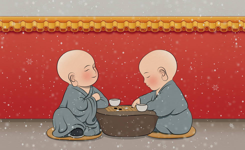 小沙弥 小和尚 雪中下棋