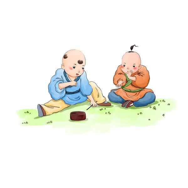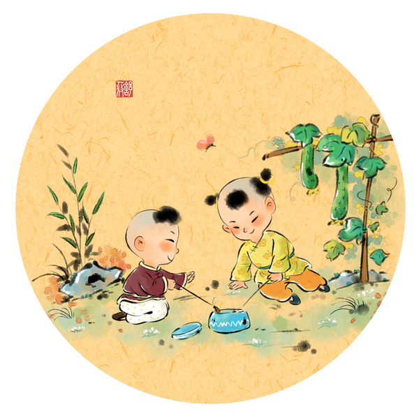 中国风水墨儿童插画