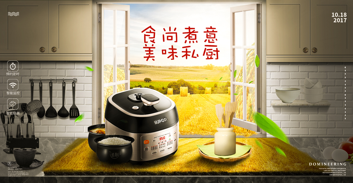 天猫38女王节九阳小家电厨房电器饭煲首页场景合成海报