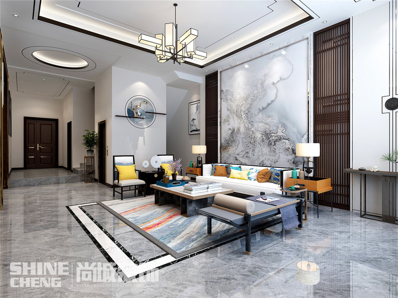泰安国山墅200平新中式风格装饰设计效果图案例