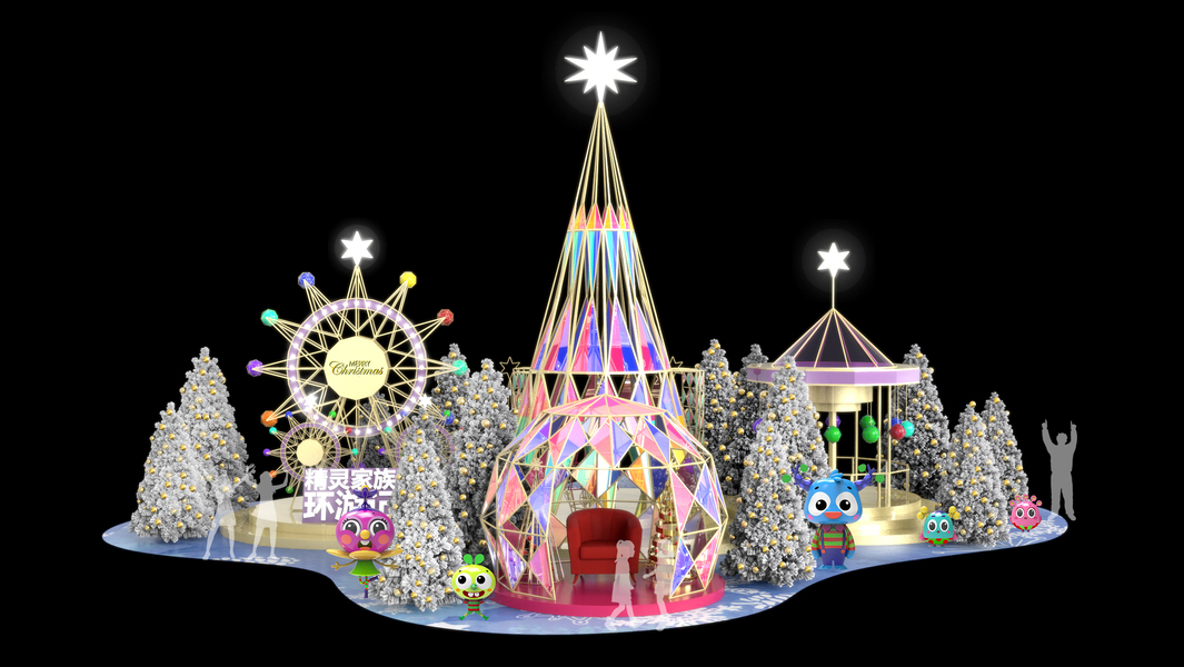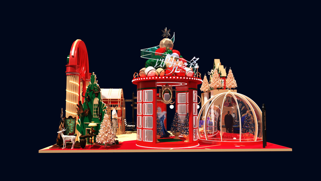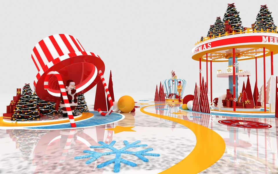 户外商场圣诞美陈dp点3d效果图设计制作
