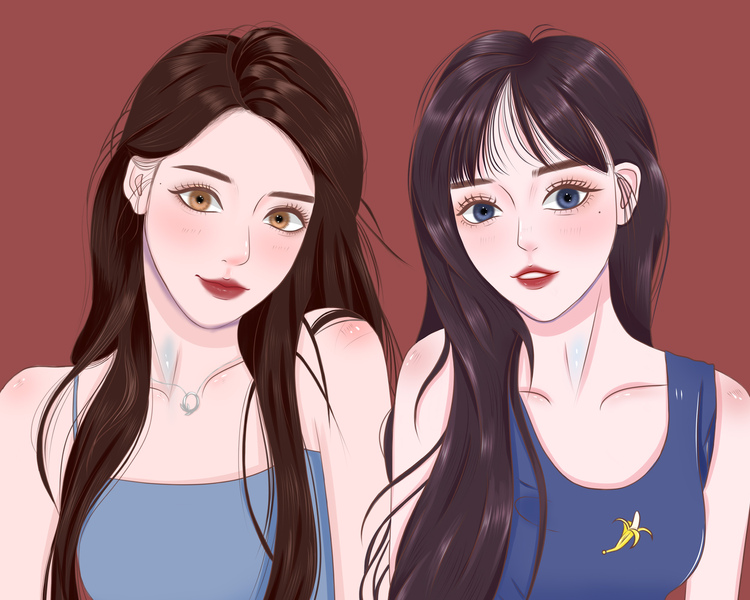 人物插画之--熟女与少女的合照