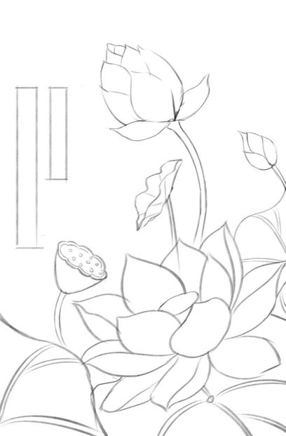 练习-荷花线稿图