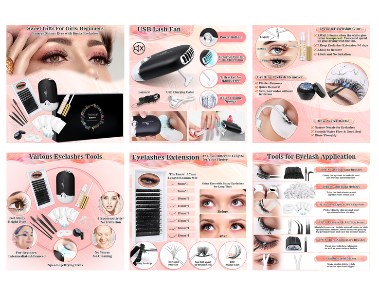亚马逊主图设计-美妆产品合集-嫁接睫毛-美妆蛋粉扑