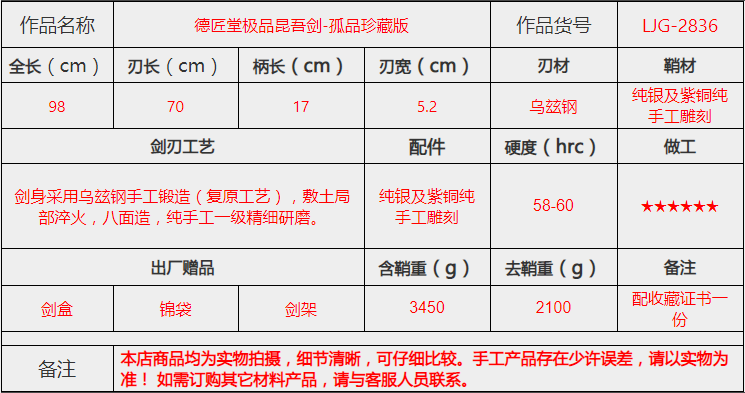 德匠堂宝剑-龙泉刀剑-极品昆吾剑-孤品(LJG-2836)