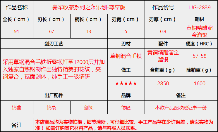 德匠堂宝剑-龙泉刀剑-豪华收藏系列之永乐剑-尊享版