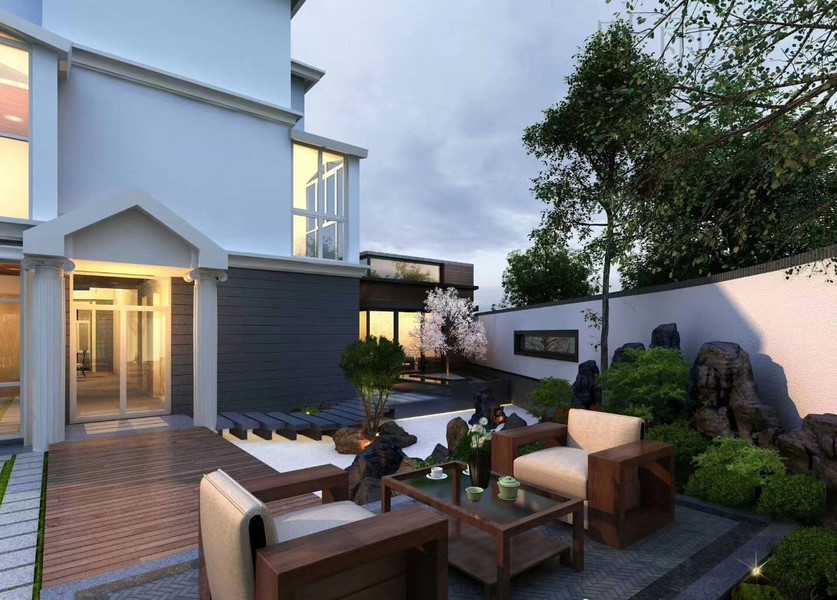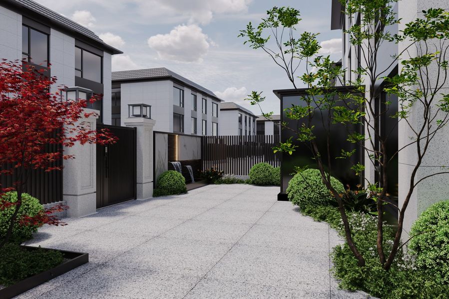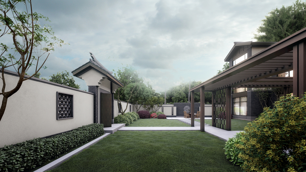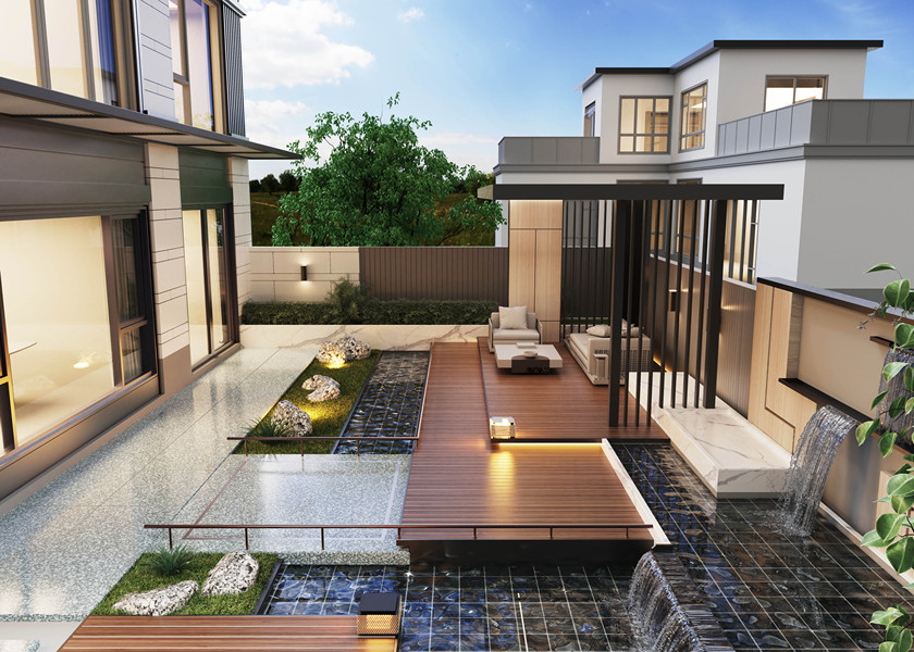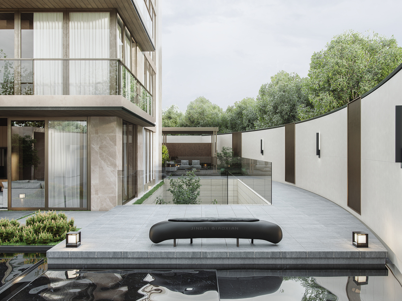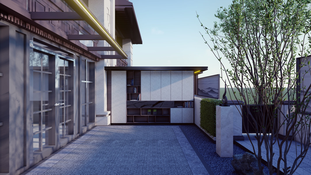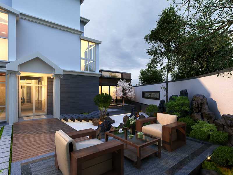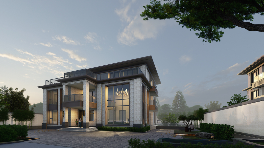 第五十八期keyshot户外别墅场景源文件游泳池庭院场景
