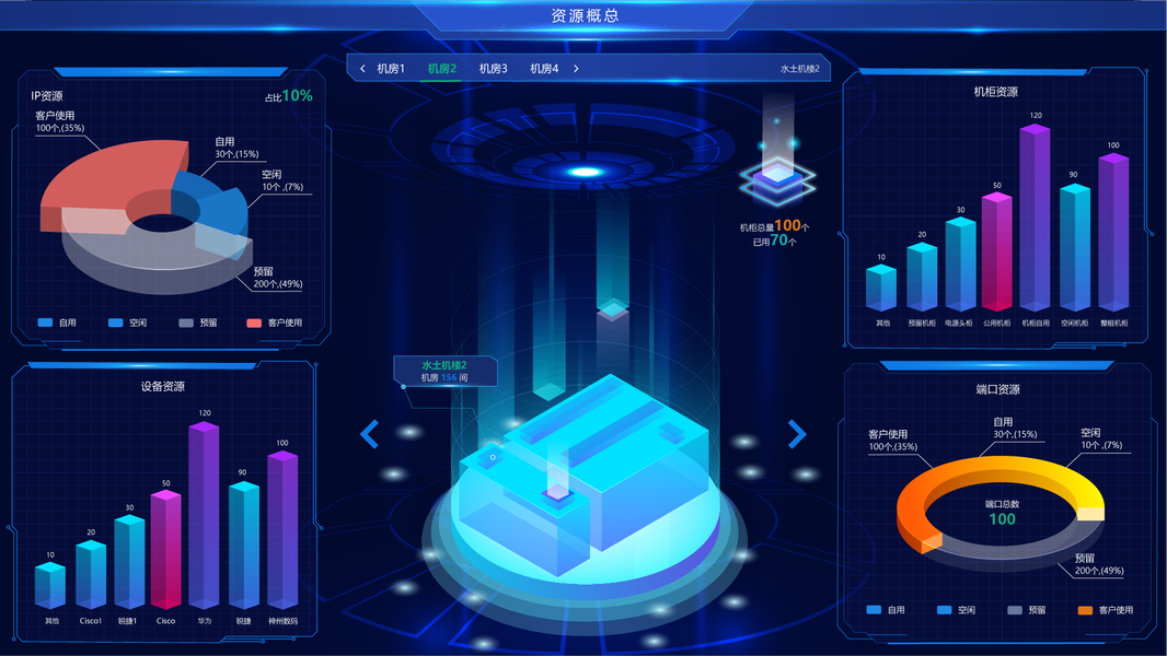 UI可视化大屏,大安管理,数据仓3D立体