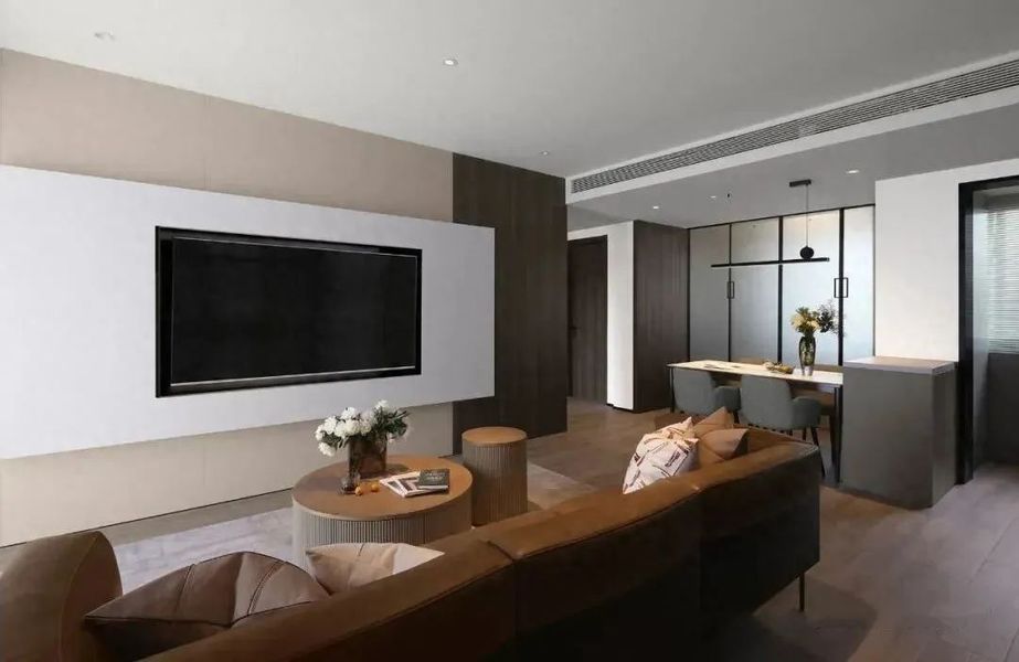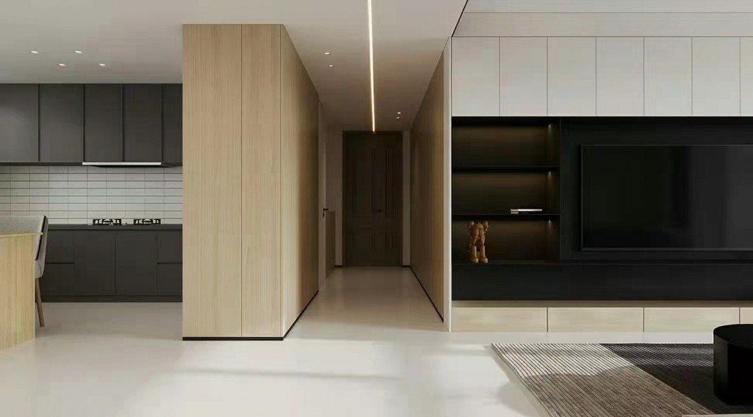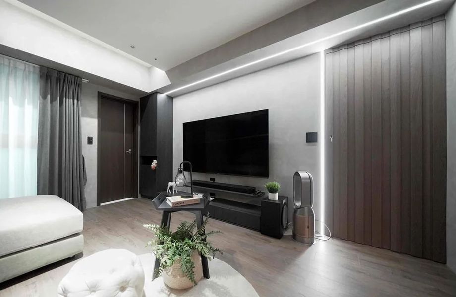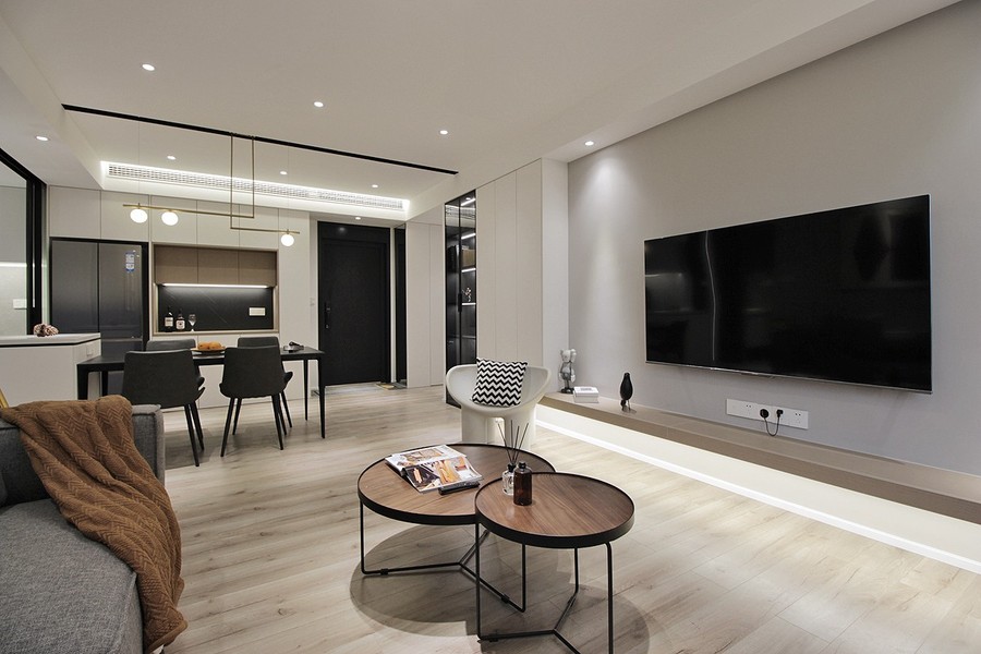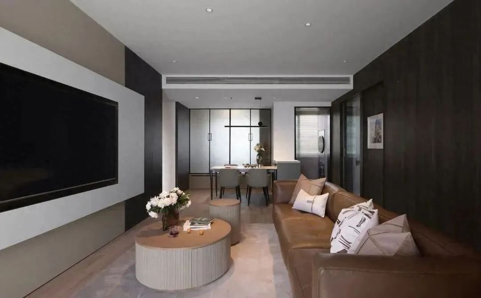 85㎡现代简约风,木饰面+暗色调搭配,小而精致的空间