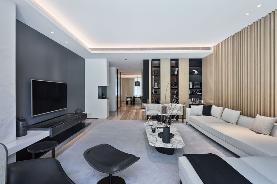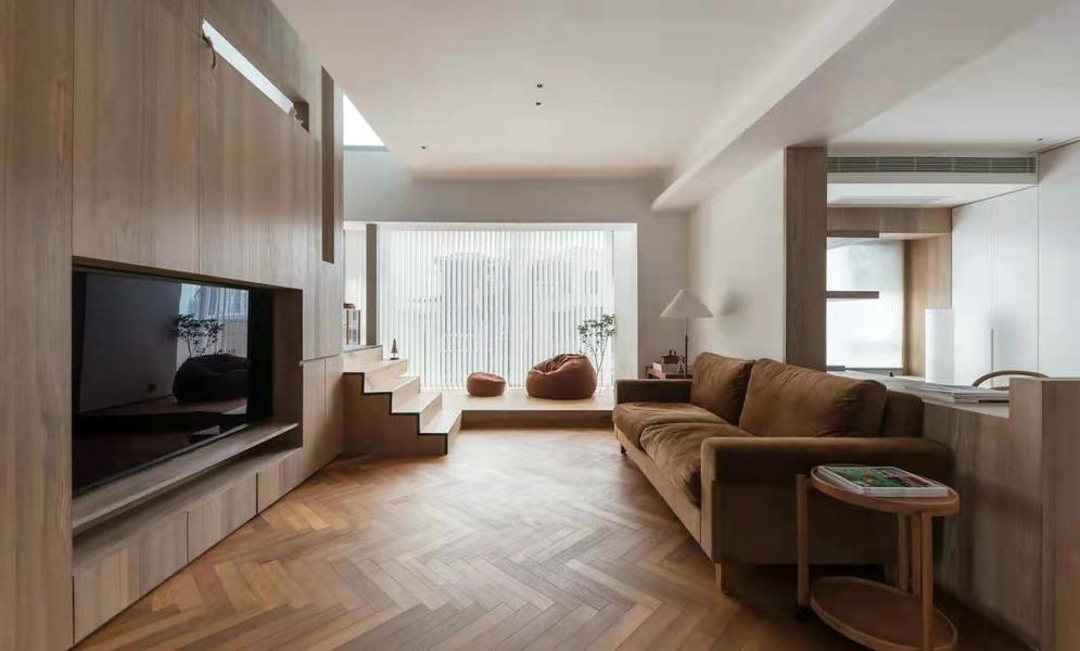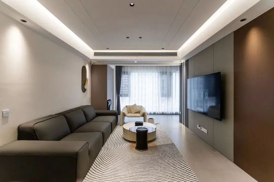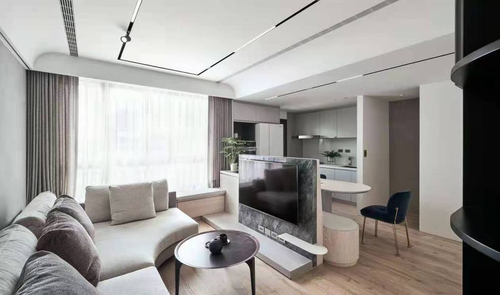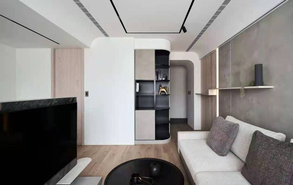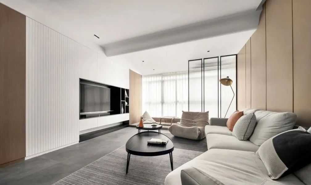 85㎡现代简约风,木饰面+暗色调搭配,小而精致的空间