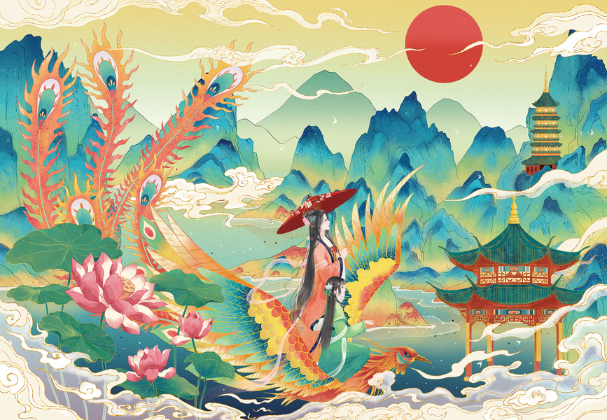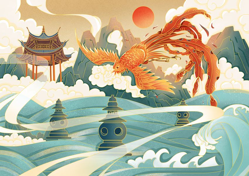 国潮插画-凤舞江南