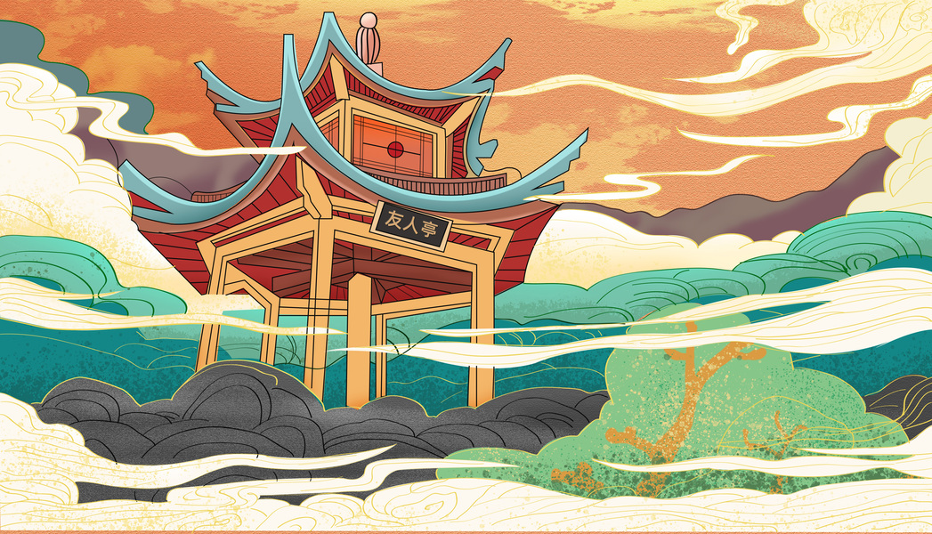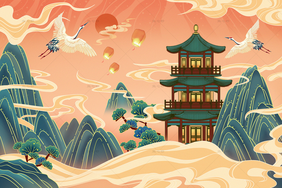 国潮建筑插画