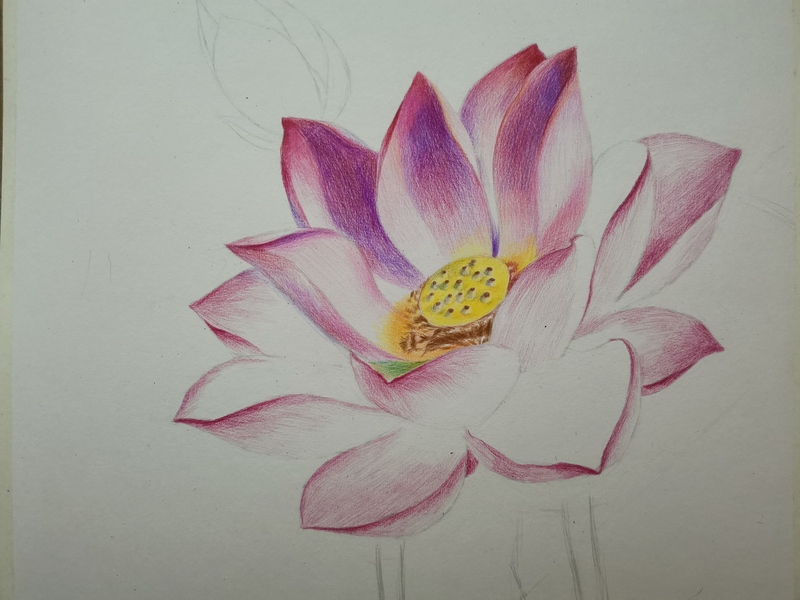色铅笔|【荷花】原创/内含详细步骤/彩铅教程