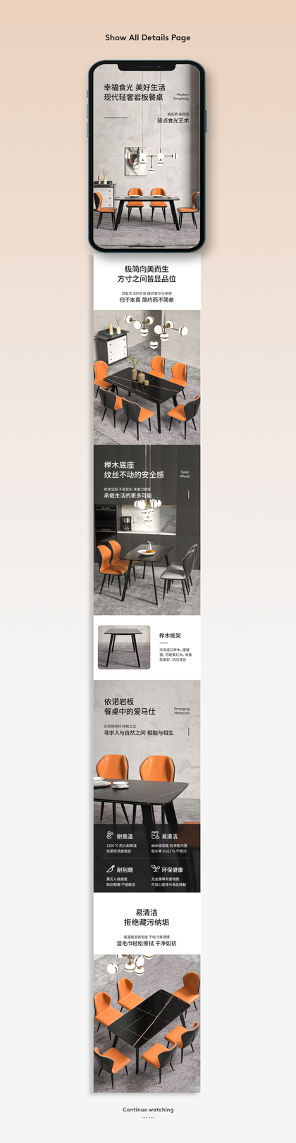 家具/餐桌/岩板餐桌/现代简约/详情页展示
