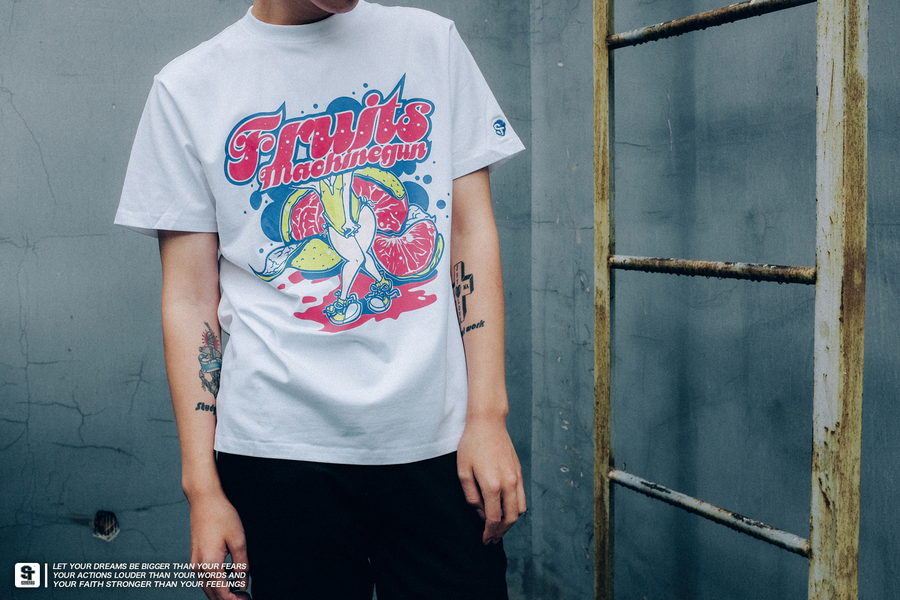 ST思锐泰格夏季新款t恤FRUITS MACHINEGUN水果妞儿短袖