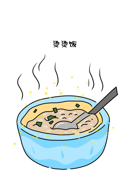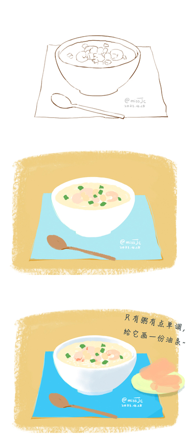原创.海鲜粥+油条.手绘美食插画扁平风.文创