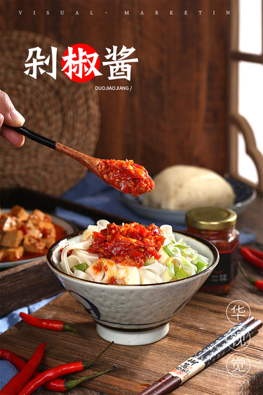 辣味、原味秘制猪肉酱捞粉套餐食材摄影设计系列