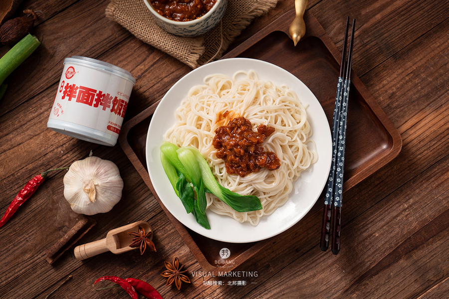 麻辣红包酱料拌面拌粉拍摄图