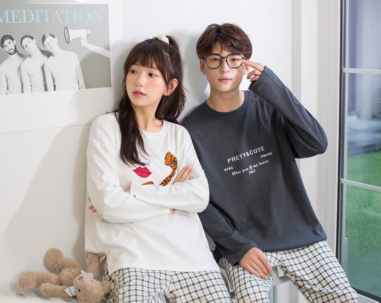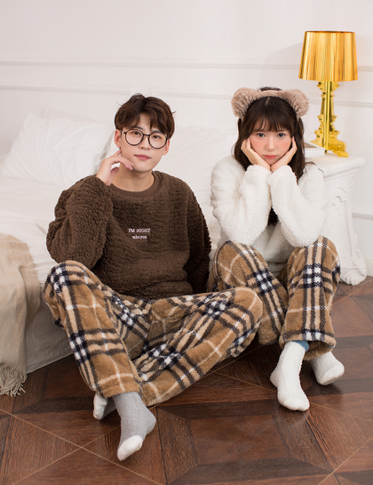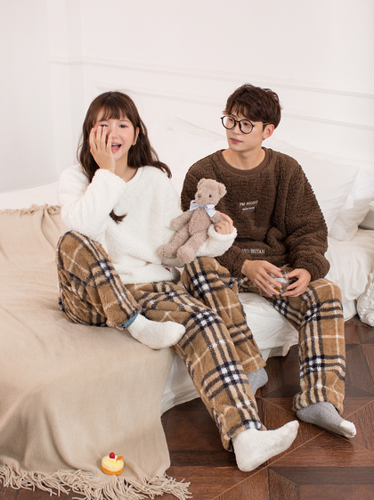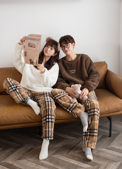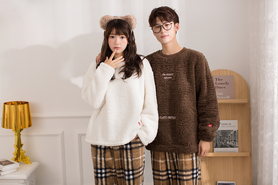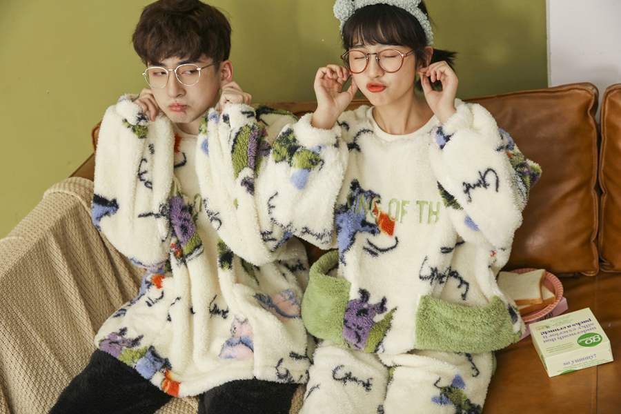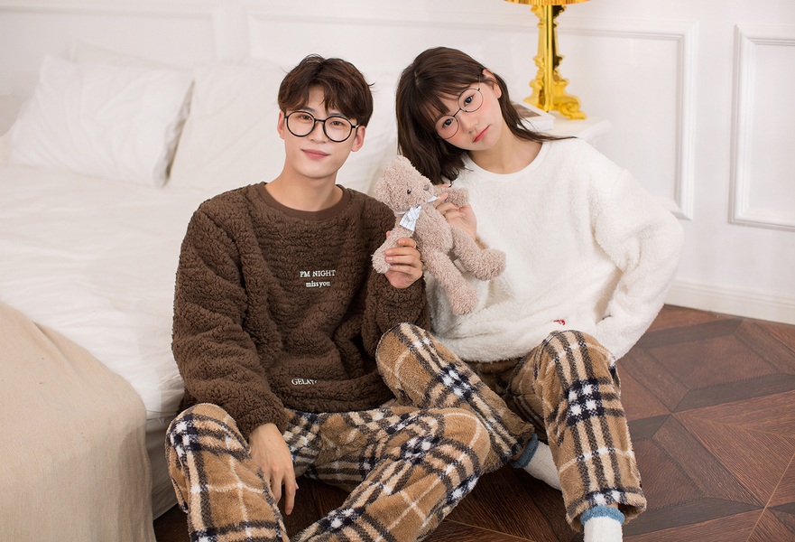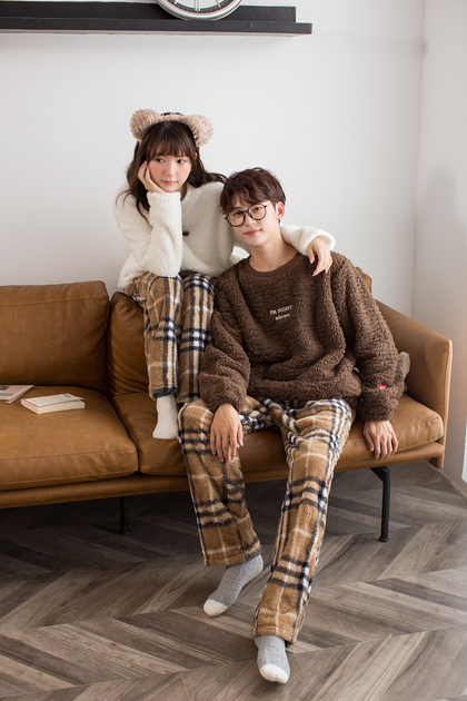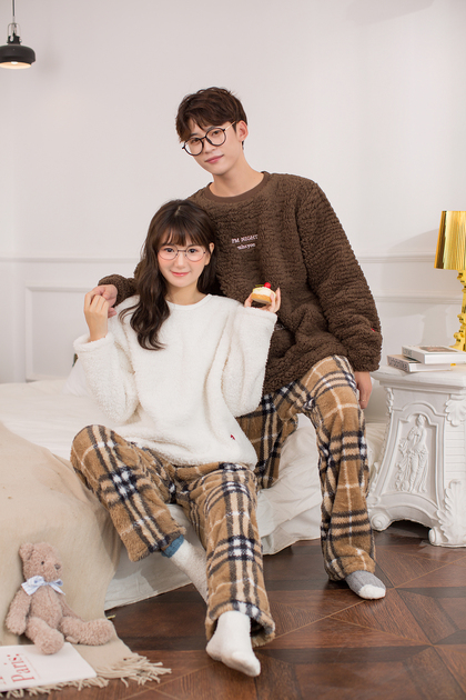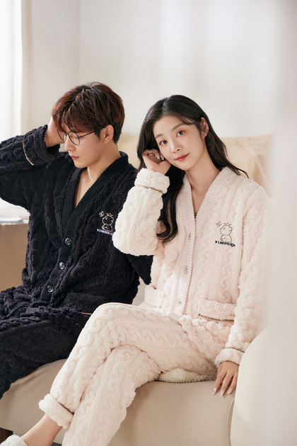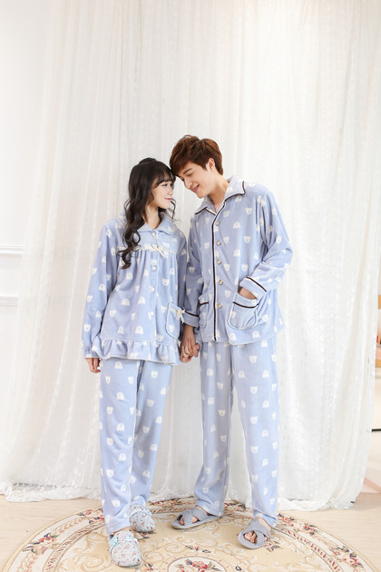 男女情侣睡衣家居服保暖内衣真丝可爱性感风模特拍摄
