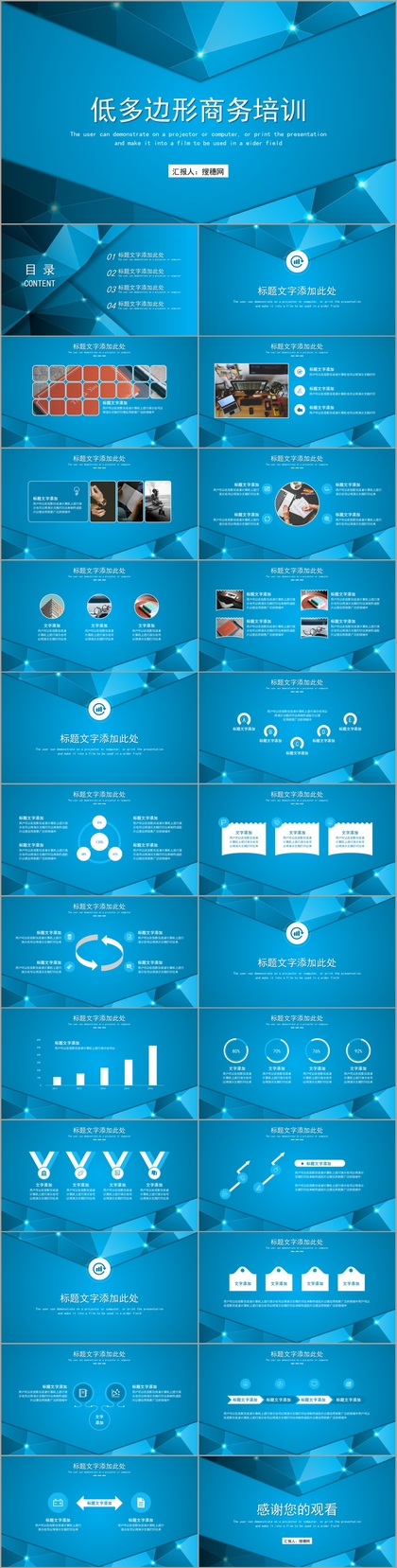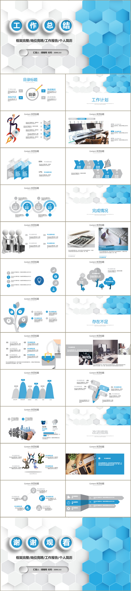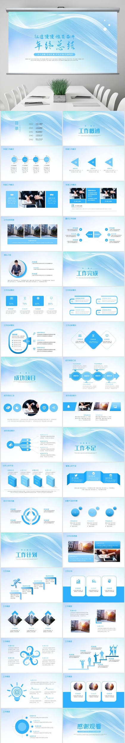 时尚蓝色简约风商务企业工作总结汇报PPT模板