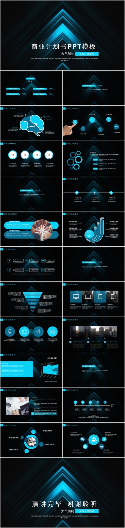 黑色酷炫感观创业商业项目发展计划书总结PPT模板