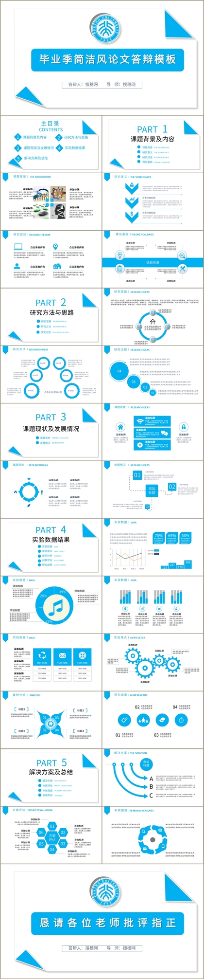 蓝色简洁毕业季大学生课题研究论文答辩PPT模板