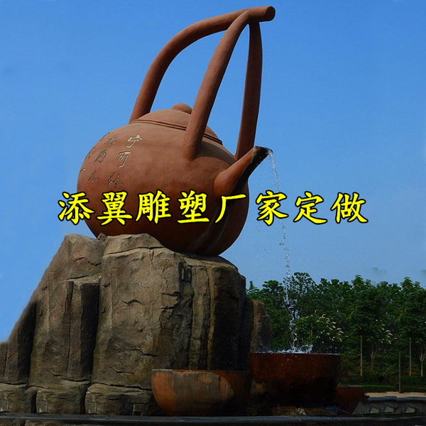 “潺潺流水”的园林景观玻璃钢茶壶雕塑清新脱俗的感觉