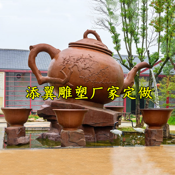 云南普洱茶园创建千年仿古紫砂盖碗景观玻璃钢雕塑艺术