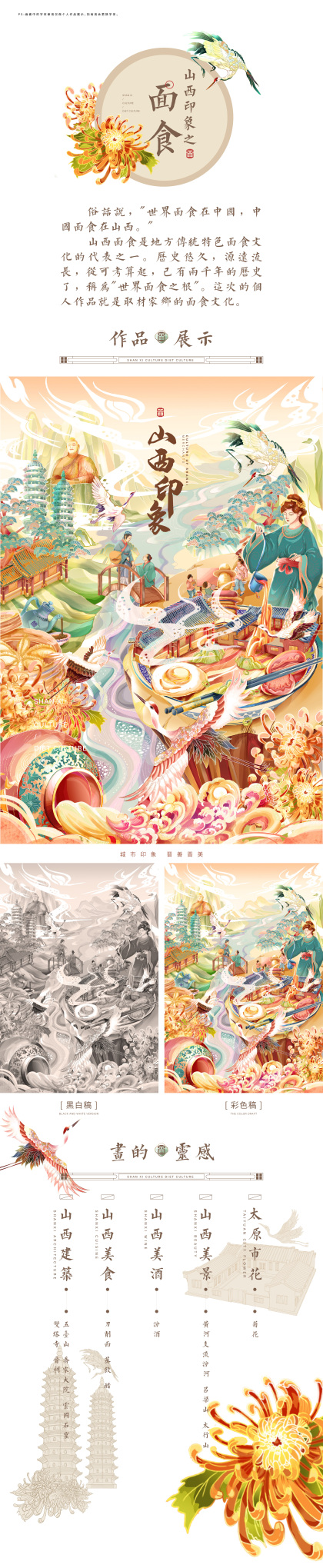 山西印象 | 国潮插画之山西汾酒+山西美食