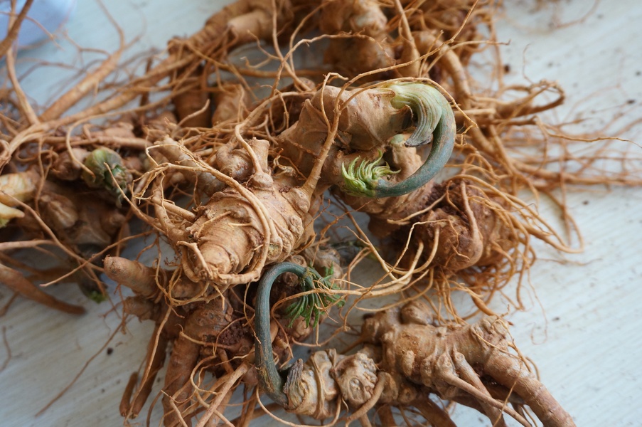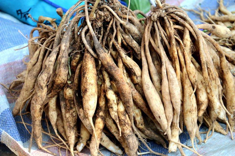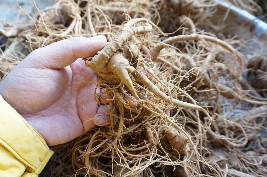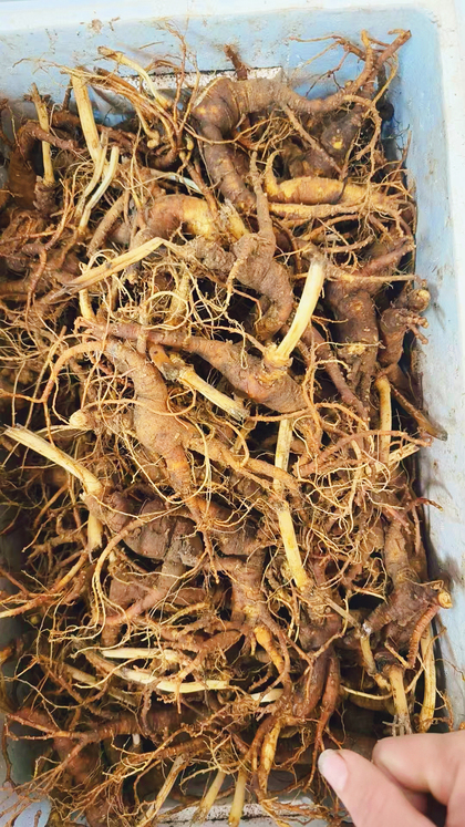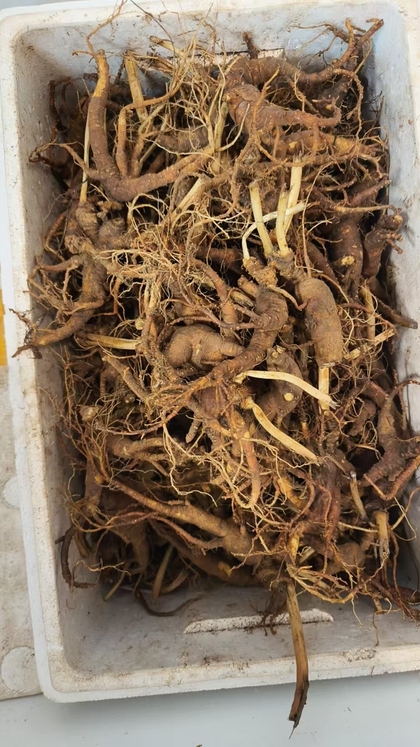 云南满泽三七中的新鲜三七,地里挖出来原样子