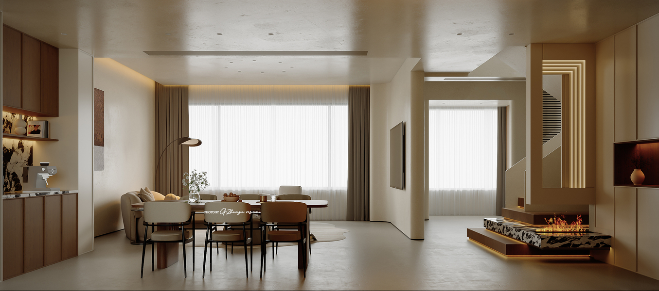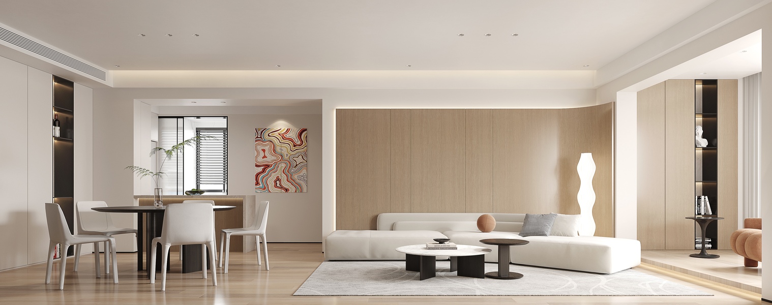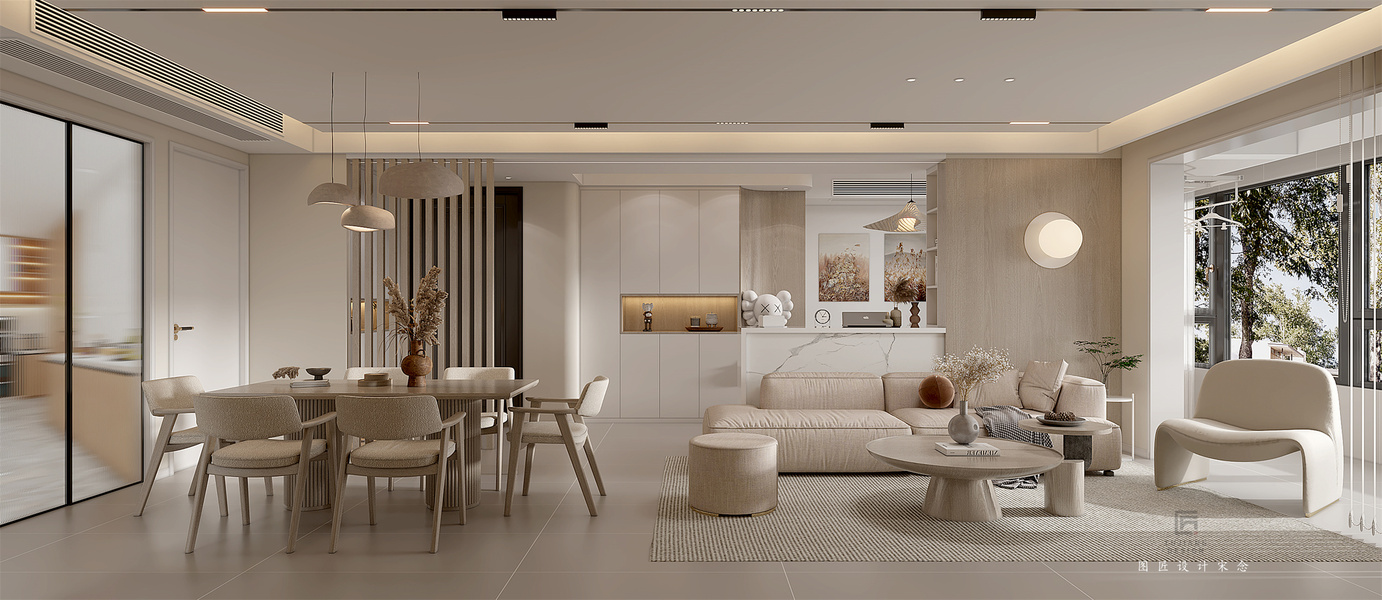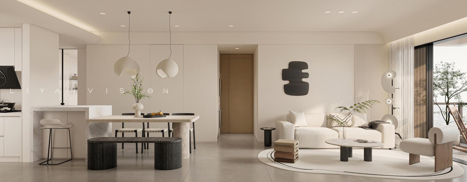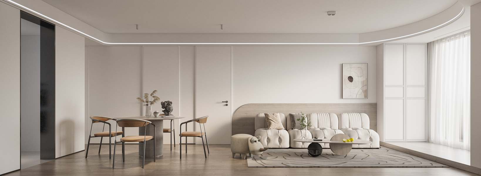 极简奶油风客餐厅效果图表现