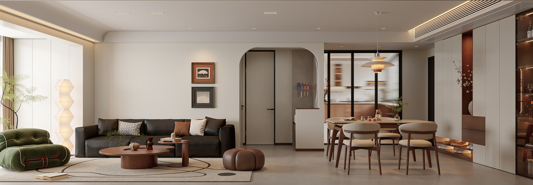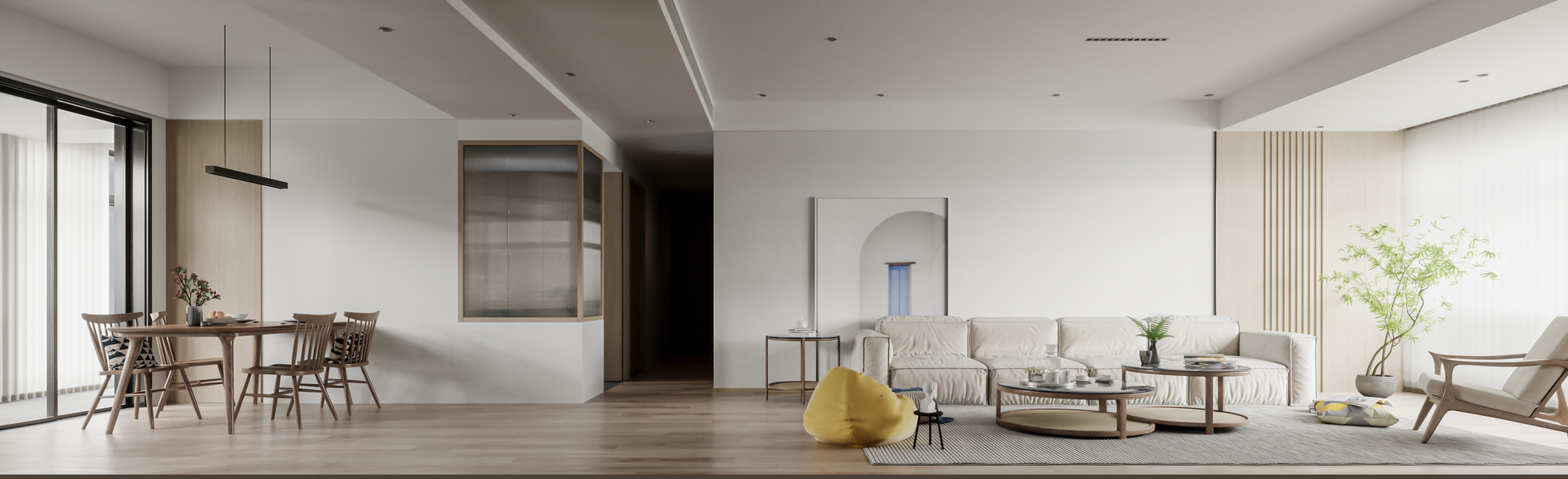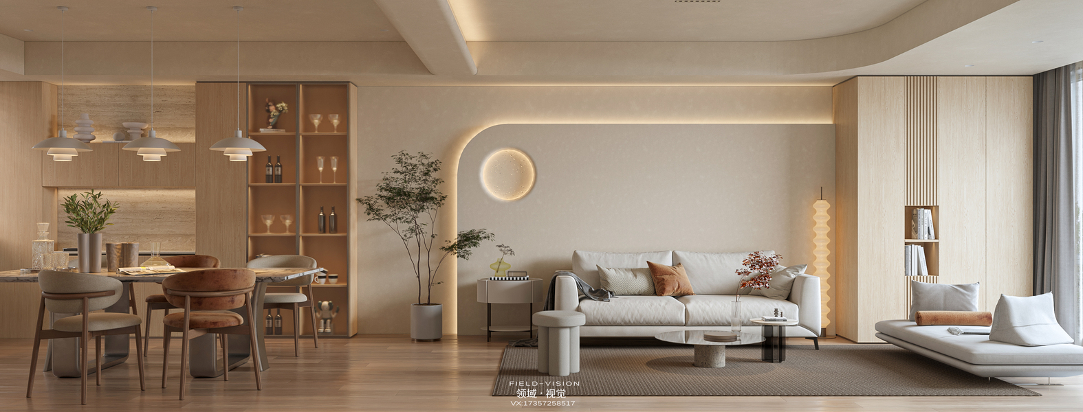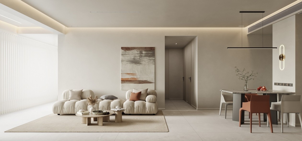 极简奶油风客餐厅效果图表现