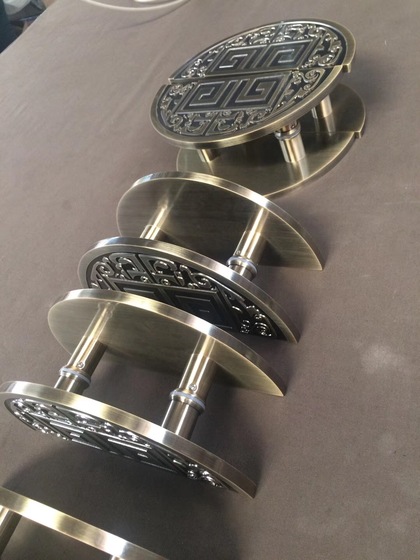 铝艺雕刻黄古铜大门拉手塑造时尚