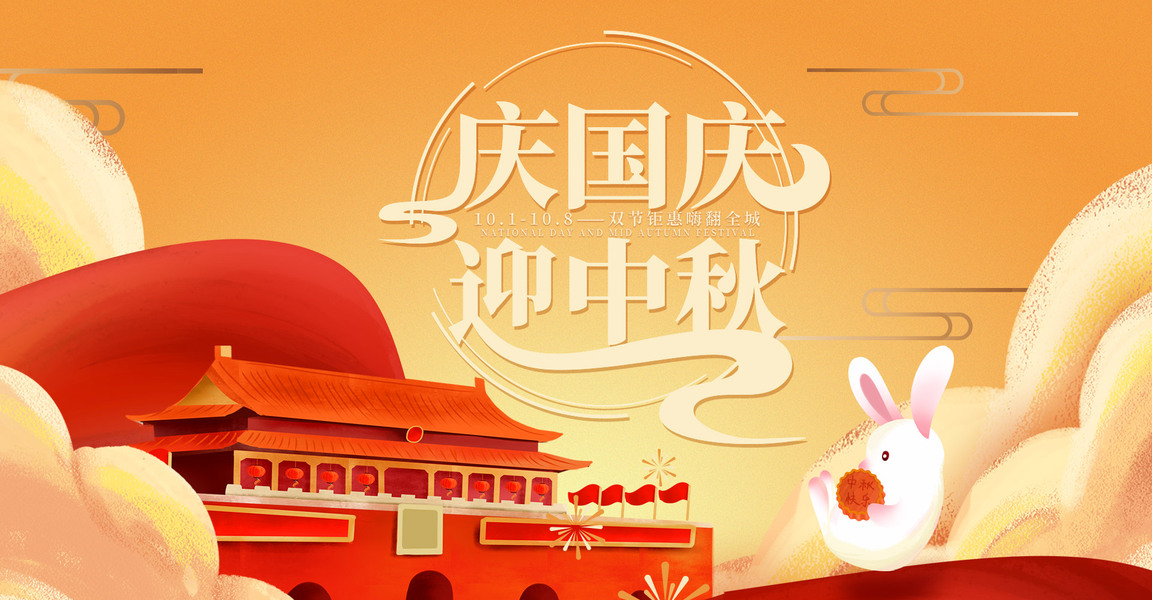 2021 中秋国庆宣传促海报 传统节日与盛世华诞双节同庆