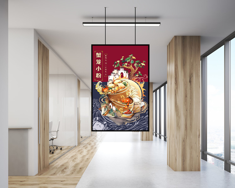 国潮商业包装插画设计|淮阳美食|蟹笼小粉