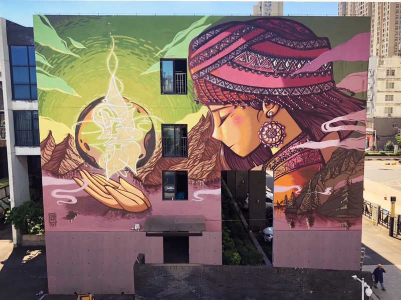 【Graffiti art】大墙涂鸦--祈福的土家族少女